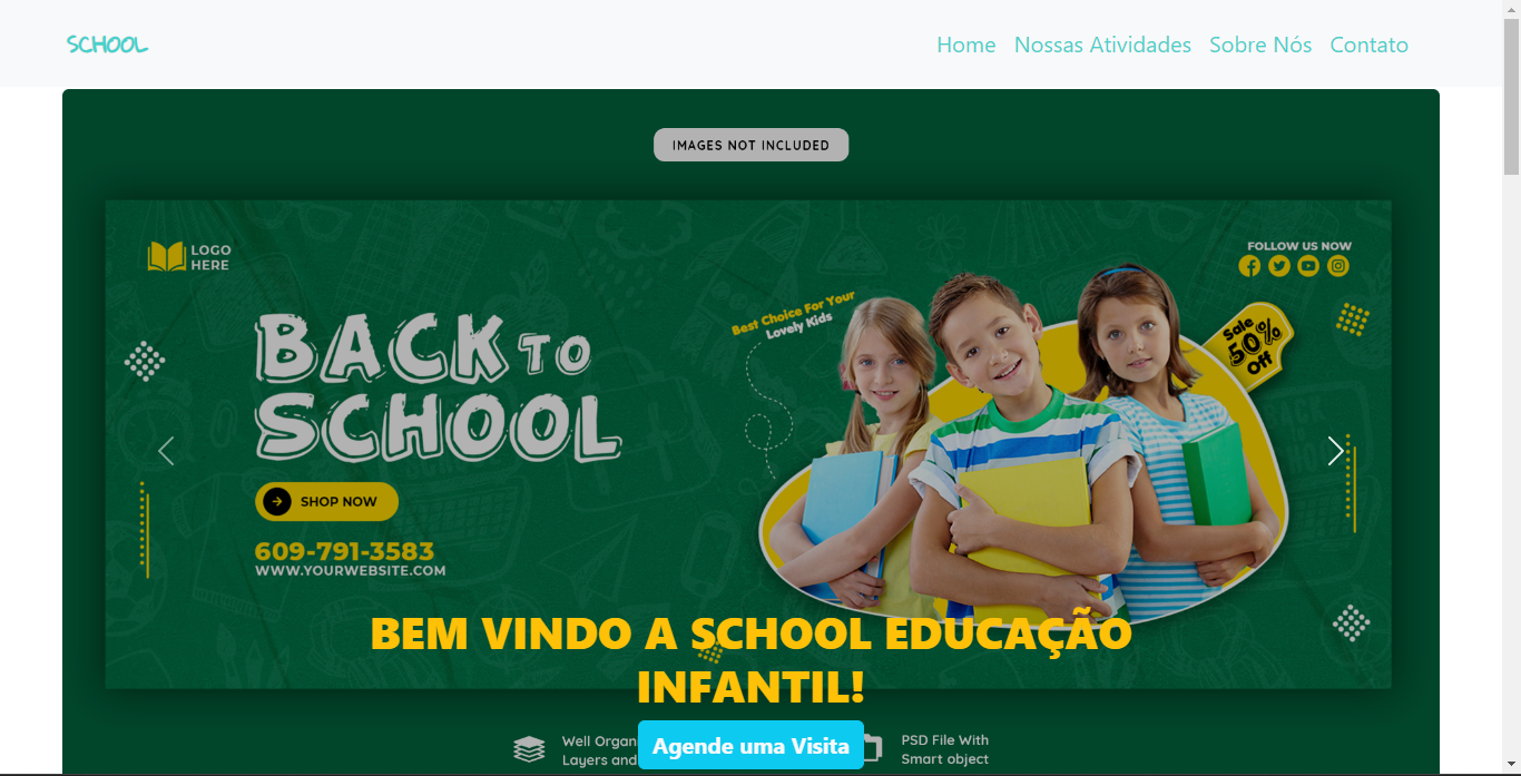 Um site desenvolvido para uma escola fictícia, nesse projeto foi utilizado o Bootstrap para estilizar os elementos e seções do site.